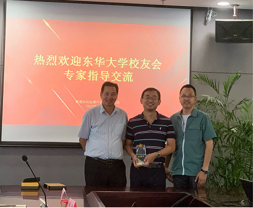会上,东华大学非织校友会副会长杨光先生宣读了授予居海滨同志“优秀校友”的决定,并由东华大学非织校友会名誉会长靳向煜和副会长杨光共同颁发了奖杯。
